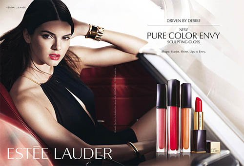 The “Keeping Up with the Kardashians” starlet is the center of attention in the new campaigns for Modern Muse Le Rouge Glss Perfume, Pure Color Sculpting Gloss and Double Wear Nude Cushion Stick products, all of which look incredible on her flawless face.